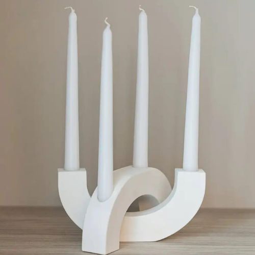A stylish Arch Shaped Candle Stand Set crafted from durable Jesmonite. Perfect for modern décor, offering a smooth finish and elegant curves. Custom colours available to match any space.