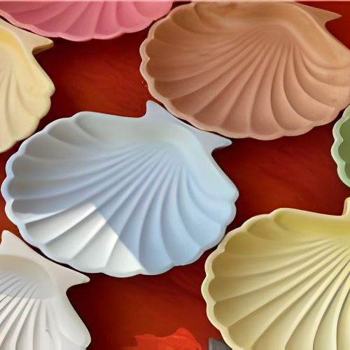 Elegant Shell Plate Jewellery Holders in a set of four, ideal for keeping rings, earrings, or trinkets organized. Beautifully shaped and available in any color to suit your decor.